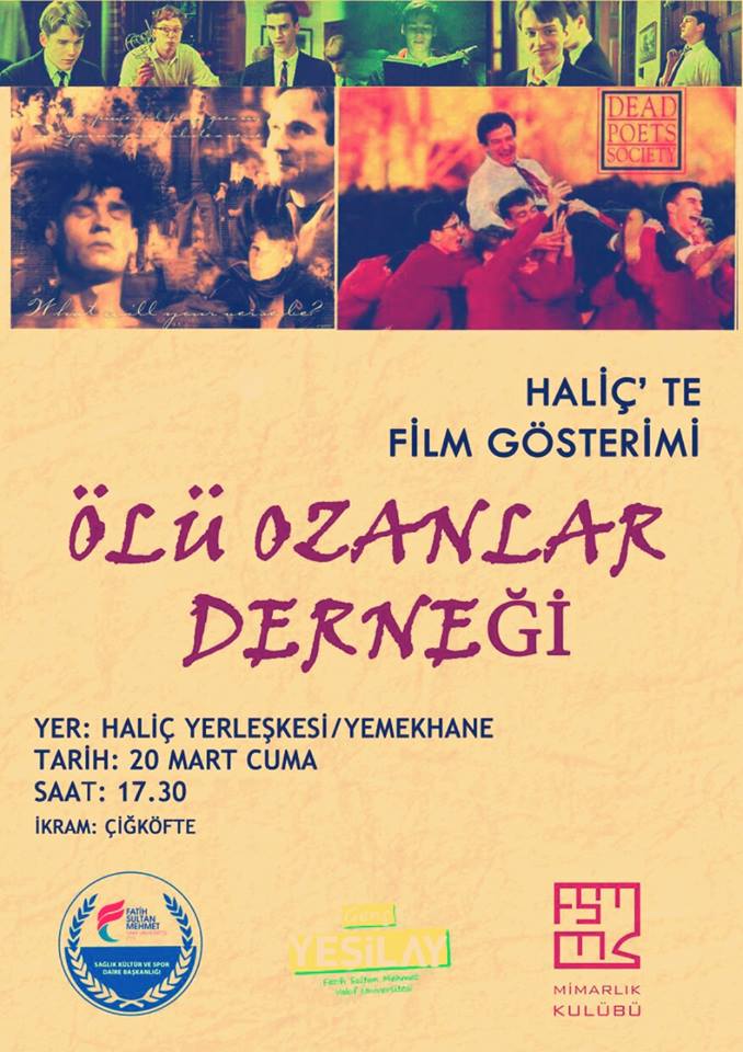 Üniversitemiz kulüplerinden olan Yeşilay Kulübünün düzenlediği film gösterimi, 20 Mart 2015 Cuma günü Haliç Yerleşkesi Yemekhane Salonunda gerçekleşecektir. Film gösterimi sırasında çiğköfte ikramı olacaktır.