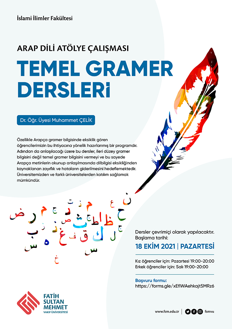 Özellikle Arapça gramer bilgisinde eksiklik gören öğrencilerimizin bu ihtiyacına yönelik hazırlanmış bir programdır. Adından da anlaşılacağı üzere bu dersler, ileri düzey gramer bilgisini değil temel gramer bilgisini vermeyi ve bu sayede Arapça metinlerin okunup anlaşılmasında dilbilgisi eksikliğinden kaynaklanan zayıflık ve hataların giderilmesini hedeflemektedir. Üniversitemizden ve farklı üniversitelerden katılım sağlamak mümkündür.