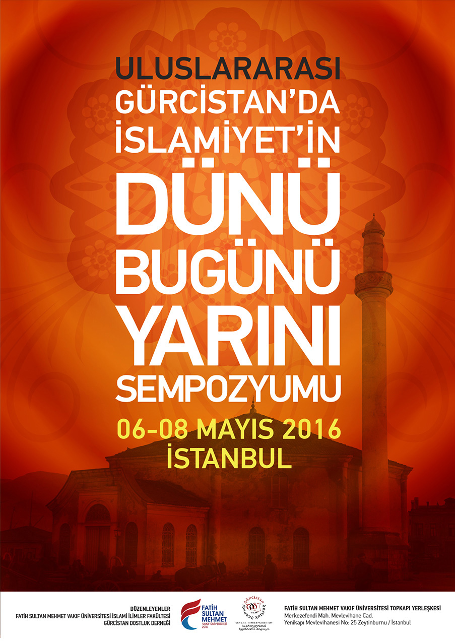 Üniversitemiz İslami İlimler Fakültesi ve Gürcistan Dostluk Derneği tarafından düzenlenen "Uluslararası Gürcistan'da İslâmiyetin Dünü, Bugünü, Yarını Sempozyumu"nun açılışı 6 Mayıs Cuma 17.00’de, oturumları ise 7-8 Mayıs 2016 tarihlerinde 10.00-19.00 saatleri arasında Topkapı Yerleşkesi'nde gerçekleştirilecektir. Sempozyuma tüm akademik ve idari personel ile öğrencilerimiz davetlidir.