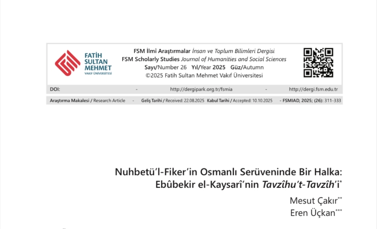 "Nuhbetü’l-Fiker’in Osmanlı Serüveninde Bir Halka: Ebûbekir el-Kaysarî’nin Tavzîhu’t-Tavzîh’i"