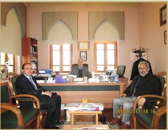 Merkez Efendi Anadolu İmam-Hatip Lisesi Müdürü Erdal BAKIRTAŞ ile Müdür Yardımcısı Derviş Ali SÖNMEZ,14.03.2017 tarihinde Fakülte Dekanımız Prof. Dr. Ahmet Turan ARSLAN’ı makamında ziyaret etti.