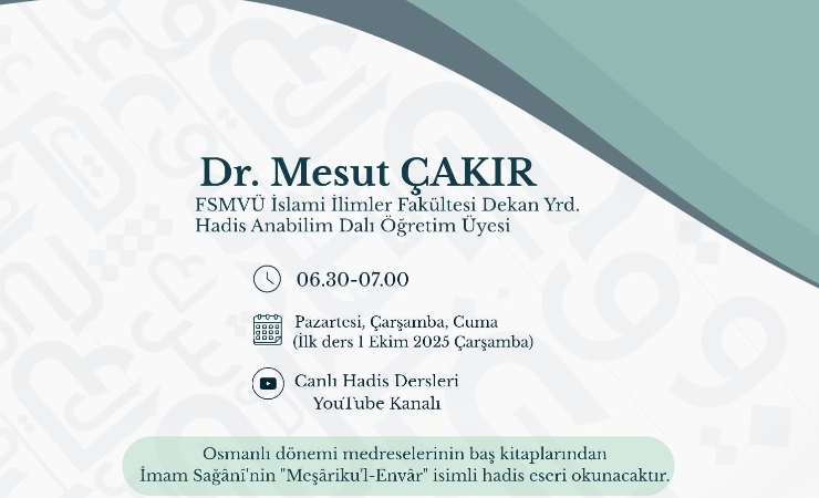 Bu kapsamda düzenlenen Meşâriku’l-Envâr dersi, Hadis Platformu tarafından Dr. Mesut Çakır hocamızın rehberliğinde, her Pazartesi, Çarşamba ve Cuma sabahı saat 06.30’da, Canlı Hadis Dersleri YouTube kanalı üzerinden gerçekleştirilmektedir.