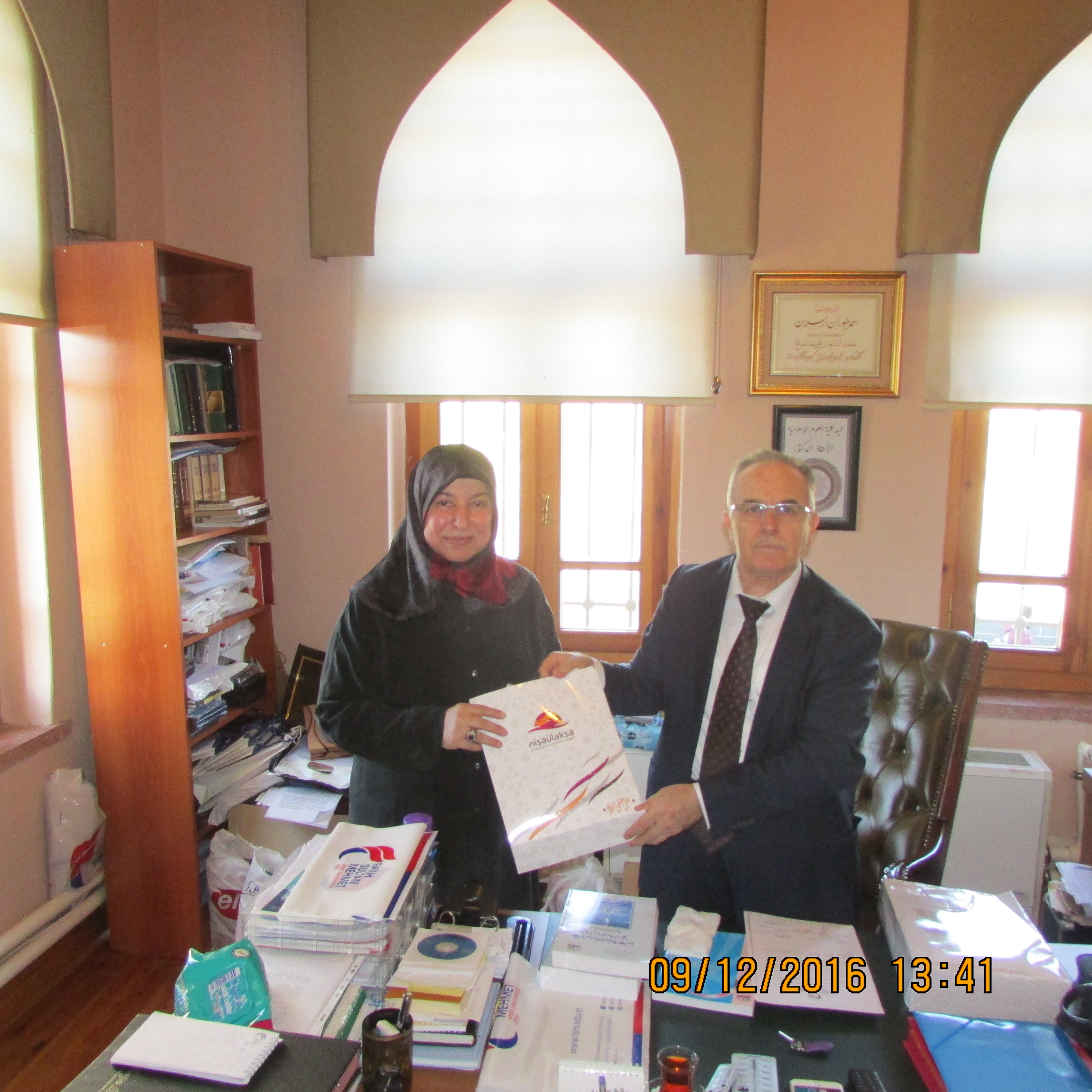 Nisâü’l- Aksa Derneğinden gelen heyet, 09.12.2016 tarihinde Fakülte Dekanımız Prof. Dr. Ahmet Turan ARSLAN’ı makamında ziyaret etti.