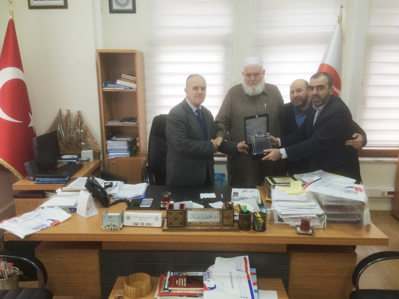 Suriyeli Büyük Alim Şeyh Muhammed Adnan Essaka, Suriyeli İslami İlimler Mezunları Birliği Üyesi Dr. Muhammed Dip Abbas ve Trablus Üniversitesi Temsilcisi Dr. İsam Abdülmevla, 11.01.2018 tarihinde Dekanımız Prof. Dr. Ahmet Turan Arslan’a makamında plaketlerini takdim ettiler.