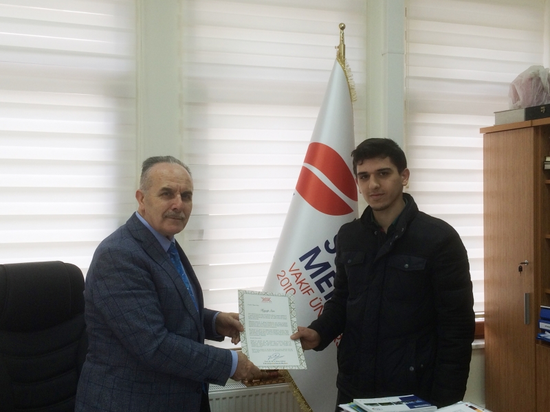 YÖK Başkanından Fakültemiz Hazırlık Sınıfı Öğrencisi Tayyip Sarı’ya Başarı Belgesi