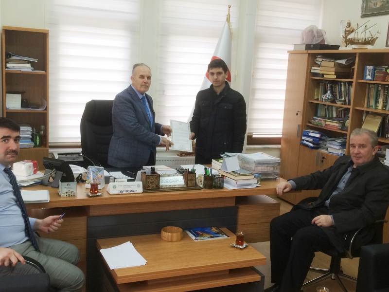 Yüksek Öğretim Kurumu Başkanı Prof. Dr. Yekta SARAÇ tarafından Fakültemiz Hazırlık Sınıfı öğrencisi Tayyip Sarı adına gönderilen başarı belgesi, Dekanımız Prof. Dr. Ahmet Turan ARSLAN tarafından 01.12.2017 tarihinde öğrencimize takdim edilmiştir. Bosna’lı şair/yazar, Saraybosna Üniversitesi İslami İlimler Fakültesi öğretim üyesi ve Fakültemizin misafir öğretim üyesi Prof. Dr. Dzemal Latic ve Fakülte Sekreter Vekilimiz Vahit YALIN bey de söz konusu takdim töreninde hazır bulundular.